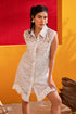 Elevate your summer wardrobe with our Applique Lace Scallop Raffia Shirt Dress in pristine white. Crafted with intricate details and delicate scallop lace, this dress effortlessly combines elegance with a touch of whimsy. Perfect for sunny days or evening soirées.