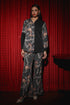 For a touch of timeless luxury, this half-baroque printed shirt with matching flared pants in black crepe is the ultimate ensemble for an unforgettable winter evening out.
