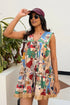 A sleeveless, tiered short dress perfect for a stylish and carefree look. It features a classic sailor collar,  finished with natural raffia trim on the hem.