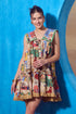 A sleeveless, tiered short dress perfect for a stylish and carefree look. It features a classic sailor collar,  finished with natural raffia trim on the hem.