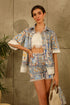 Exuding the essence of a dolce-inspired summer from its subtle hues to delicate blooms, this two piece co-ord set features an open jacket and matching high-waist shorts with fringe benefits and lace detailing.