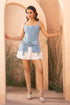 Daywear denim made effortlessly chic in our Piccadily Dress with pockets. It features an azure denim bodice culminating in a white shiffli-layered hemline.